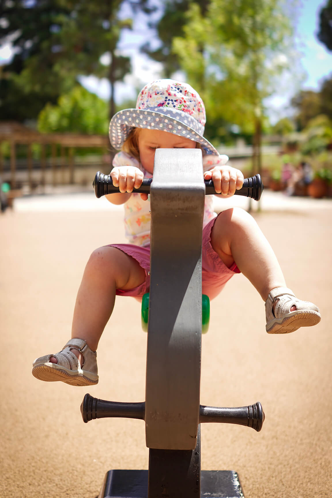 Parque das Nações is a newer part of Lisboa located in the north. There are nice green-areas, playgrounds and a lot of public art and fountains to play in. Our little one especially loved the water sculpture right outside of Oceaneário de Lisboa, the local aquarium. She even enjoyed it more than the visit we had to the aquarium.